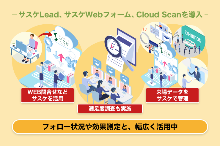 —サスケ導入後、まずは問合せとホワイトペーパーのダウンロードリストから活用をスタート。今では満足度調査の実施・展示会来場者データ管理も。「マーケティング部門から営業部門」への連携が叶いました。